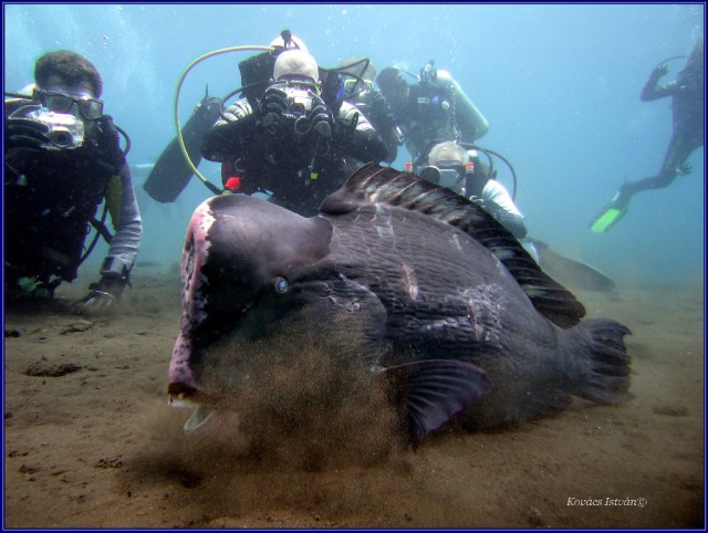búvárvezető rendszeresen etette virslivel a muréna pajtit. az meg rászokott, hogy csak ezt eszi, egyszer a zacsival bénázot a gyerek, a muréna meg éhes volt. mivel nem túl jól lát a csávóka hüvelykujját hamizta be. kicsit megrázta magát, és tőböl tépte le a srác ujját. nem is lett meg. a jobb lába középső ujját tették oda neki az ügyes orvosok. érez vele, meg tud fogni, de nem túl vonzó. nem házállat az biztos | ||
