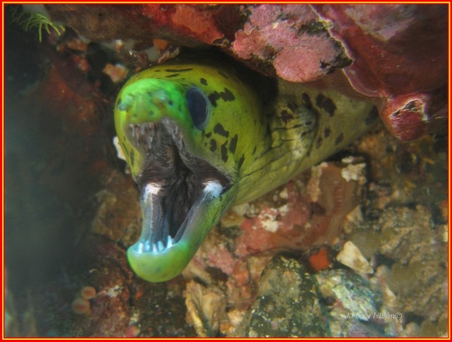 búvárvezető rendszeresen etette virslivel a muréna pajtit. az meg rászokott, hogy csak ezt eszi, egyszer a zacsival bénázot a gyerek, a muréna meg éhes volt. mivel nem túl jól lát a csávóka hüvelykujját hamizta be. kicsit megrázta magát, és tőböl tépte le a srác ujját. nem is lett meg. a jobb lába középső ujját tették oda neki az ügyes orvosok. érez vele, meg tud fogni, de nem túl vonzó. nem házállat az biztos | ||