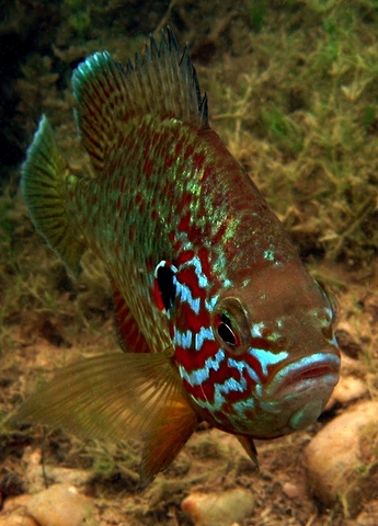 Édesvízi sokszínűCanon PowerShot S80 f 4 1/100 sec Talán van, aki nem tudja, hogy hazai édesvizeinkben is élnek színpompás halacskák. Íme egy közülük: ikráit ádázul védő naphal a hegyeshalmi kavicsbánya tóból.