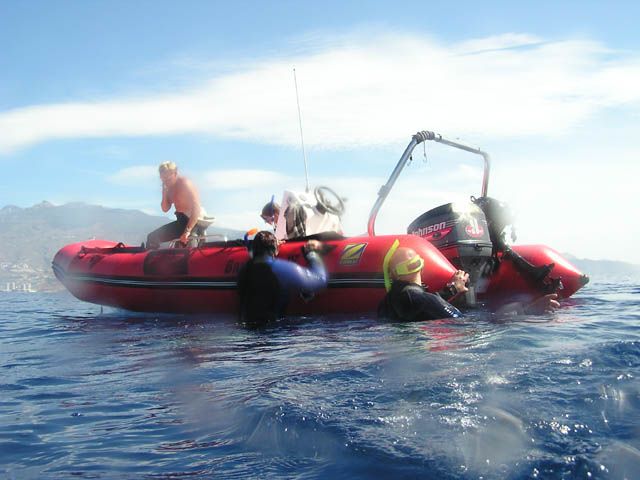 Visszatérés a hajóraMinden rövid találkozás után visszaúsztunk a csónakhoz. Nagyon rutinosak lettünk a végére a kimászásban.