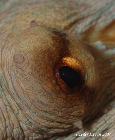 Szemtől-szembeNIKON D80 f 11 1/125 sec Egy kedves polip szép szeme. Valahogy mindig megfogott e kedves kis állat szép szeme. Most módomban állt viszonylag közelről fotózni őt. Nem menekült.