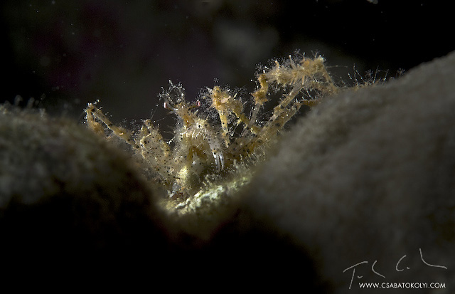 FalatozásNIKON D200 f 32 1/60 sec Elbow crab, a szirti hippi. Most eppen csipeget vmit nyugalomban, de altalaban amint talalkoztunk elkezdett fenyegetoen integetni az olloival...