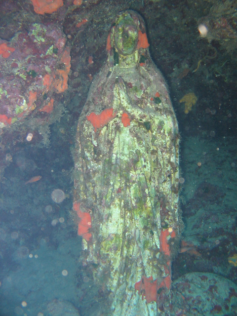 Madonna szoborCanon PowerShot A60 f 2.8 1/60 sec A Rozi roncstól pár perc úszásra egy üregben a helyi búvárok helyezték el. A máltai emberek általában vallásosak.