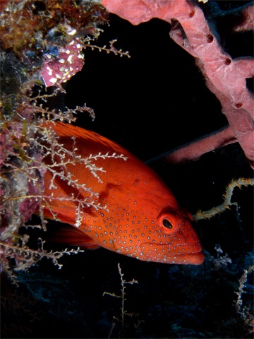 Vége? Előjöhetek?A Precontinent II-nél sikerült összefutni ezzel a bújócskázó sügérrel. Többször is előjött, hogy megnézze, eltűntem-e már, mivel a napi tisztálkodásában zavartam meg egy tisztítóállomáson.