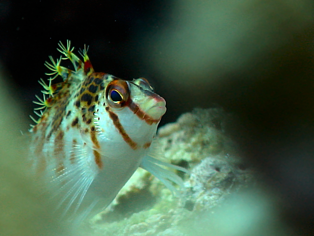 Bújkáló fotósSONY DCR-PC350E f 4 1/25 sec őkelme nagyon félénk. A megközelítésére az egyetlen lehetőség az volt, hogy a korall mögött bújkálva, annak egy pici résén keresztül kaptam lencsevégre. Sulawesi 2008.