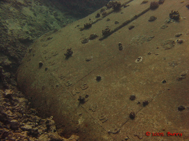 Ghiannis DCanon PowerShot A60 f 4.5 1/125 sec A roncs orrán végigfutó merülési mélységet jelző vonalak ragadták meg a fantáziámat. A kép manuális fehér egyensúllyal készült, nem digitálsan módosított - a rozsdás fém ilyen a víz alatt.