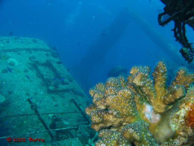 A Ghiannis DCanon PowerShot A60 f 5 1/160 sec A roncs két jellemző motívuma a D betű a hajó kéményen és a jellegzetes fordított U alakú felépítmény egy képen, előtérben egy korall. Bár nagyon úgy látszik a kép NEM montázs, nincs módosítva. Az egyik büszkeségem a túrán ez a kép, szerintem nagyon kifejező.