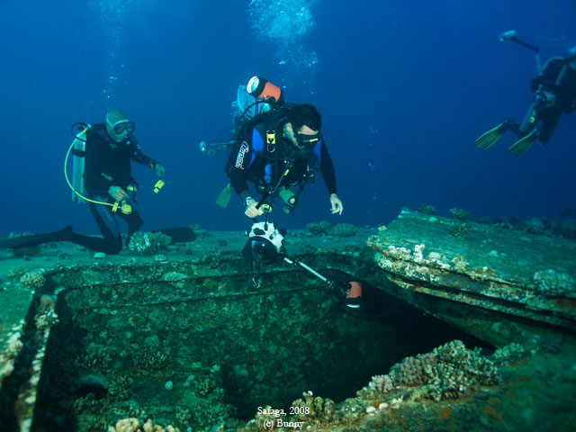Salem ExpressCanon PowerShot S70 f 2.8 1/125 sec Első merülésen a fotós és videóscsapat a belső tereket fedezte fel. Előd Laci ereszkedik lefelé, balra Memo térdel.