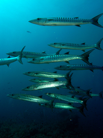 Barrakuda - 1DSC_Maker DSC f 6.6 1/160 sec Ekkora barrakudákat még nem láttam együtt rajba. Na itt szépen összeálltak a rajjá ezek a 90 centis halak. Fent északon jó, ha fele ekkorák a barrakudák és a fekete farokvégű tipus elég ritka.