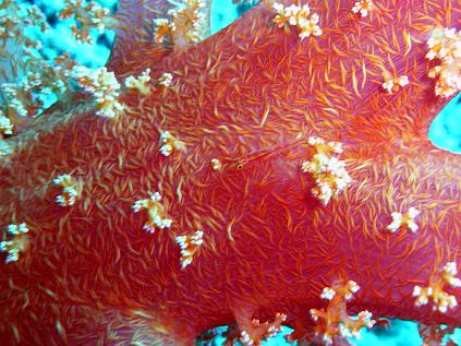 Panasonic DMC-TZ2 f 4.2 1/30 sec A lágy korallon élő tökmag. Sikerült e legnagyobb áramlásban felfedeznem, így a kép sem lett a legjobb..