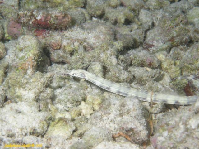 A sekély vízben csapatostul lapultak meg ezek a halacskák. A mimikrijük szinte teljesen elrejtette őket a halott korallok között. Egyébként a csikóhalak közeli rokonai. A fejük még hasonlít is.