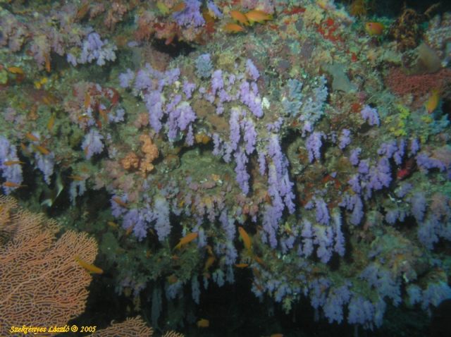 SzüretA manták utáni merülőhely a Malhos thila volt. A reef tetején fantasztikus korall kert volt található. Az áthajlások tetején pedig hihetetlen dúsan lógtak a lágykorallok. Fantasztikusan szép volt. A plafon olyan volt, mint szüret előtt a szőlőtőkék.
