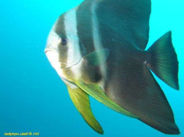 Denevér hal a Hohola thilánNagyon sok denevér halatt láttam a merülések alatt, de ez a példány minden túl tett. Az egész napos túra utolsó merülőhelye volt visszaúton az atoll közepén a Hohola thila . Szerintem ezt a helyet igen ritkán, kb hetente egyszer merülik. A halak szó szerin az ember szájába másznak. Itt kellett megélnem azt, hogy egy wrassét szó szerint el kellett zavarnom a maszkom elől. Ez a denevér hal meg tízszer rám úszott, hogy fotózzam már. Mondanom sem kell nem ez az egyetlen kép róla.