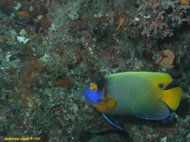 Kék arcú angyalhalő is az utolsó merülésen került lencsevégre. A képkivágás lehetne jobb is.