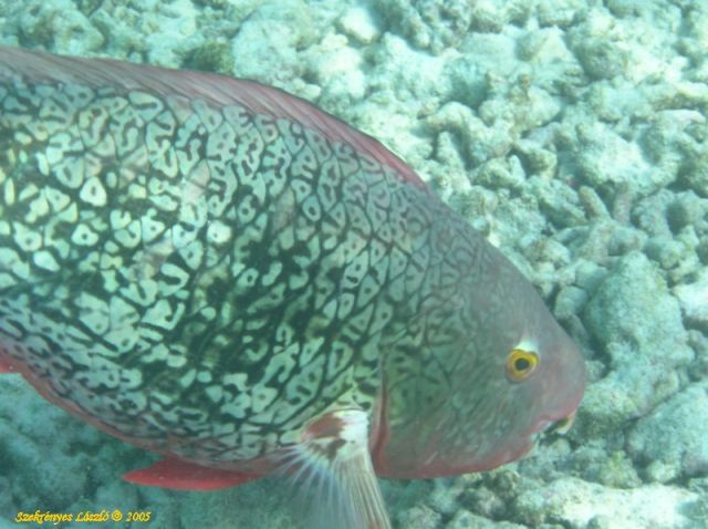 PapagájhalAz utolsó nap csak sznorizás volt, ekkor készült ez a portré a house reef szélén. Szerintem ezt a halat láttam aludni az éjszakain egy gorgónia tövében vagy egy barátját. :)