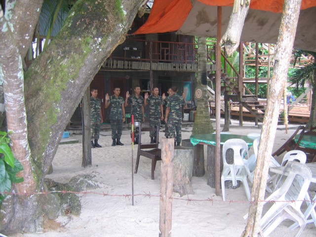 ArmyCanon PowerShot A95 f 2.8 1/20 sec Minden sziget elengedhetetlen kellékei, a maláj katonák. Éppen reggeli eligazítás van.