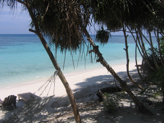 PanoramaCanon PowerShot A95 f 4.5 1/1000 sec Kilátás a kuckónkról a partra és a vízre. Lankayan igazi trópusi paradicsom.