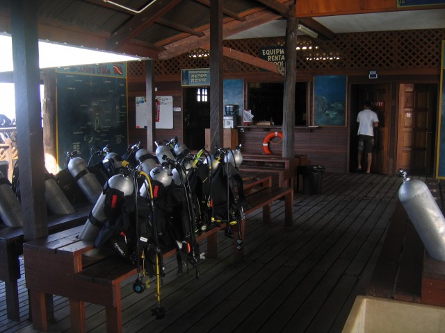 BázisCanon PowerShot A95 f 4.5 1/40 sec A búvárbázis kint található a jetty mellett a cölöpökön álló stégen. Szuper volt minden, jól működött a gépezet. Le a kalappal a srácok előtt.