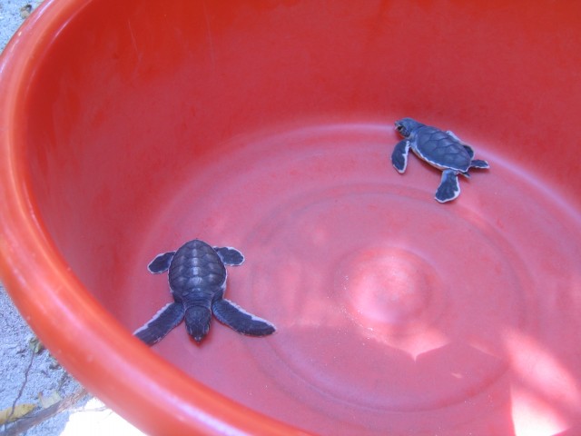 Turtle IV.Canon PowerShot A95 f 3.2 1/15 sec ők ketten alvó társukat várják türelmetlenül...Pár perc és mindhárman szabadon távozhattak a tenger felé:)