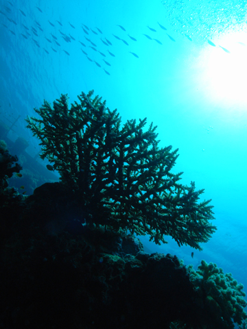 ÁrnyjátékDSC_Maker DSC f 5.1 1/570 sec Az Umbria gyönyörű roncsán nőtt ez a korall egy kilógó alkatrészen. Ezen a merülésen elfelejtettem kinyitni a benti vakut így vezérlés híján vaku nélkül fotóztam egy párat.