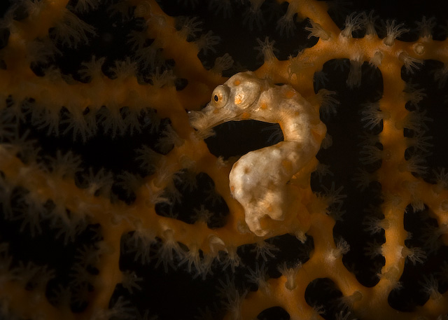 A Wakatobi LegényanyaNIKON D200 f 16 1/60 sec Egy adrián készült sárga csikóhalportré tette lehetővé, hogy elkészíthessem ezt a sárga csikóhalportrét - csak sokkal, sokkal messzebb! 2008 legnagyobb élménye számomra az volt, hogy visszajutottam Indonéziába. És ha már a legek fordulója: ezt a képet a világ egyik legkisebb csikóhaláról készítettem, a világ eddigi legtávolabbi, általam látogatott pontján... A korallpolipok méretét nézve maga az allat is csak pár centiméter hosszú, és remekül passzol az otthonául szolgáló korallhoz - aki nem először találkozik velül, na szerintem az sem leli őket egykönnyen segítség nélkül. A képen látható egyed egy büszke apa, aki hamarosan életet ad a következő nemzedéknek. Minden kétséget kizáróan az év élménye számomra...