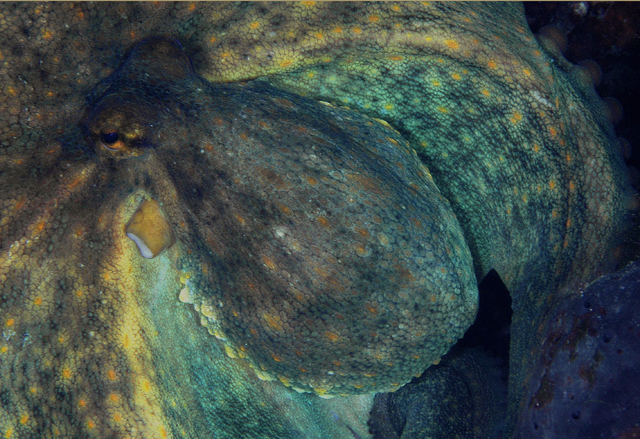 105-ös makróval bóklásztam 5-10 méter között a Kriaritsi merülőhelyen társ nélkül,csigát kerestem. Benézegettem az összedobált sziklák alkotta üregekbe is, amikor megláttam fél méterre sem volt, úgy tolattam vissza mint a vihar. Feje mint a futballabda, tapadókorongjai vagy három centisek, fehér és vörös között váltogatta a színét. Levegőellenőrzés (140), hosszadalmas bátorság gyűjtés után, 1,5 m-ről lőttem rá. Persze nem fért a képbe, viszont kinyúlt a vakukar után. Ismét viharos tolatás, gondoltam a gépet megtartom még jó lehet valamire. Lenyűgöző darab volt... Feltöltő: istvanv , Megtekintve: 4477
