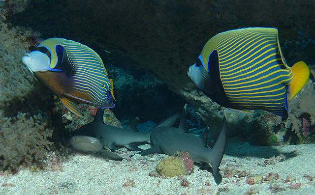 Vegyes párosNikonos V-ös Egy kis géppel készült a kép jó néhány éve.Egész véletlenül akadtam rá.Nem akartam egy sokadik mantát feltenni érdekesnek tartottam ezt a képet főleg az arányok miatt.Gondoltam megosztom veletek.A cápák kicsik voltak max egy méteresek lehettek.Egyszer feltettem egy fotós oldalra kiváncsiságból mit szólnak hozzá.Érdekes észrevételeket irtak ,nagyon tágas az emberi kébzelet.