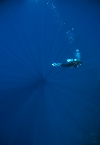 Deep blueNIKON D70s f 8 1/90 sec Az egyik wakatobin történt merülés végén a hajóhoz visszaúszva vettem észre Verát, ahogy az összetartó napsugaraktól távolodik. Gyorsan ellőttem ezt a képet és reménykedve vártam, hogy esetleg felnéz és meg tudom neki mutatni, hogy menjen vissza, jobban tetszett volna ha odafelé megy. Sajnos nem vette észre a próbálkozásomat, így maradt ez a kép, rajta a magányosnak látszó búvárral.