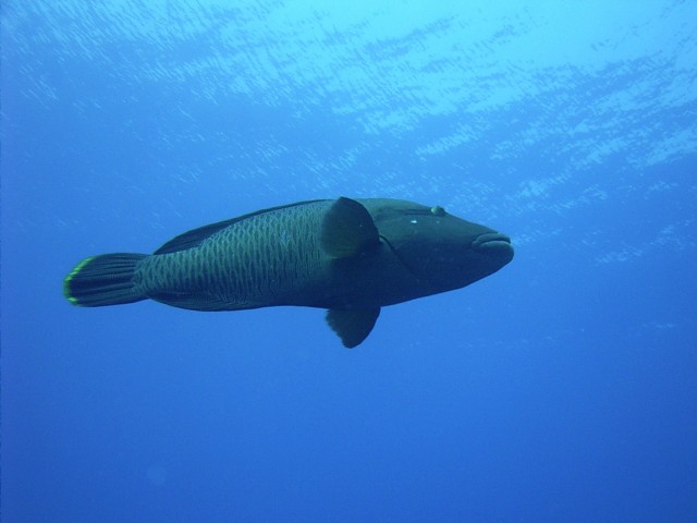 Deep blues...RICOH Caplio RR30 f 2.6 1/410 sec Napóleon, lebiggyesztett szájjal a nagy kékségben, egy kicsit mélyre süllyedve nagy kék bánatában..., avagy maori ajakoshal, akinek az "ajka" lefelé görbül... ;(..... ;)