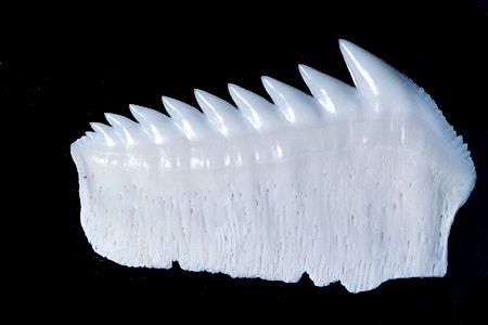 A szürkecápa alsó állkapcsában széles, fűrészszerű fogak sorakoznakForrás: Doug Perrine