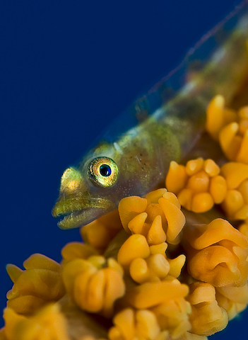 Félcentis fogak! (keresztben...)NIKON D200 f 8 1/60 sec Mert a félelmetes vicsor nem csak a nagyok sajátja. Fogakat minden szájba! Mégha oly "hatalmas" egyedről van is szó, mint a képen pózoló ostorkorall géb. A kép direkt tág rekesznyílással készült, hogy kihangsúlyozza e "méretes" lény ördögi vigyorát...