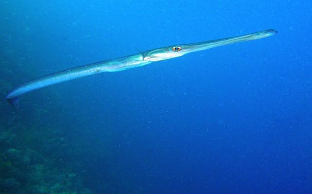 A kép az Eel Garden merülőhelyről kifelé sétálva készült: uszony a bal karon, maszk a nyakban, fotógép a jobb kézben, így hasaltam be a szédítő másfél méteres vízbe, amikor észrevettük ezt a kövek közül kikandikáló - amúgy bőven kölökkorban lévő - maszkos murénát. | ||