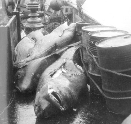 Kifogott grönlandi cápák egy halászhajó fedélzetén(Forrás: Fiskier, Norway)