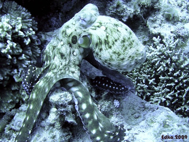 A nagy imitátorOLYMPUS C740UZ f 3.2 1/60 sec A legszebb polip volt amit életemben láttam és a leghosszabb ideig is, sajnos erős volt a fény és emiatt nem működött a vakum, így a színei nem jöttek ki. Azóta is bánom, hogy a sietségben nem egy videot csináltam róla olyan bámulatos volt az alakváltozása