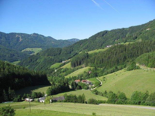 Steiermark tájképA környék önmagában is megéri a kirándulásra szánt időt, csodálatos hegyek, zöldelő rétek, patakok.