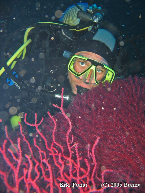 Búvár gorgóniávalCanon PowerShot A60 f 2.8 1/400 sec Hinnéd, hogy ez az Adrián készült? A méretes gorgónia mögött a bázis egyik tulajdonosa, merülőtársam kíváncsiskodik.