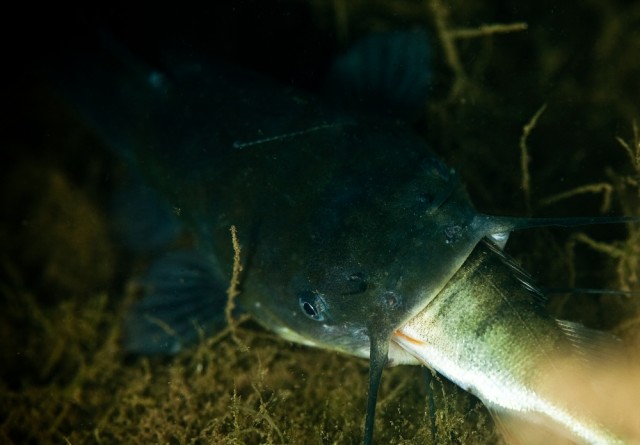 Egyik éjszakai merüléskor , mikor ikrát mentem fotózni, akkor vettem észre véletlenül ezt a törpeharcsát. Épp bekapta az egyik ikrákat eszegető sügeret. Feltöltő: Balage , Megtekintve: 4448