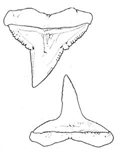Az ezüstuszonyvégű felső és alsó állkapcsának fogai(Forrás: Floridai Természettudományi Múzeum Ichtyológiai Osztály)