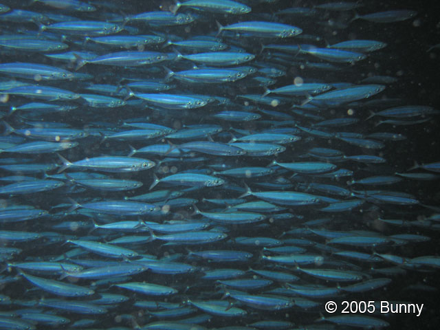HalrajCanon PowerShot S70 f 3.2 1/250 sec Éjszakai merülésen a plató fölött két reflektor világította meg a vizet és a fedélzetet. Ennek örömére pezsgő élet gyűlt a hajó mögé, hatalmas kavargó halraj, muréna, denevér halak, miegymás.