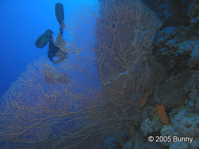 Gorgóniás falCanon PowerShot S70 f 2.8 1/250 sec Néhány méteres gorgóniák tömkelege vár minket ezen a merülőhelyen. Áramlás is akadt.