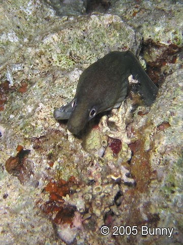 Bice-bócaCanon PowerShot S70 f 2.8 1/250 sec Ezt az apró murénát véletlen fedeztem fel. Szegény alsó állkapcsa valami csetepatéban vagy születésileg kibicsaklott, tartok tőle nem lesz hosszú életű, mert így nem fog tudni enni.