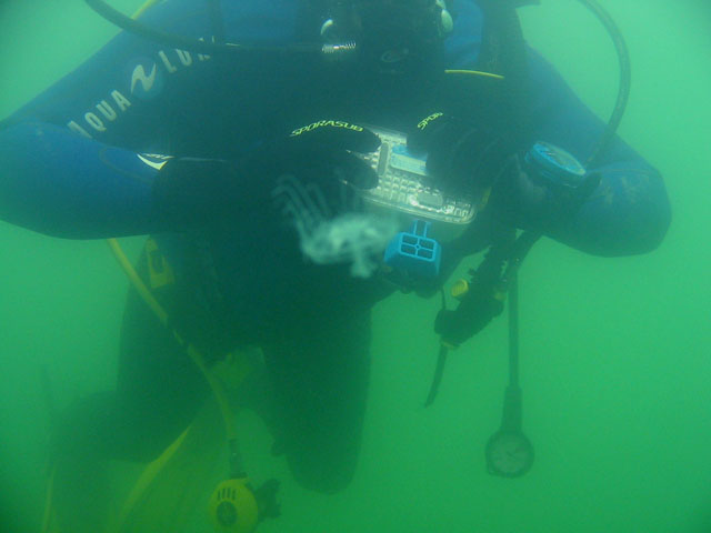 Édesvizi medúzaCanon PowerShot A60 f 2.8 1/500 sec Sajnos az alig pár cm-es áttetsző medúzára a zavaros vízben nem lehetett fókuszt állítani, de azért nagyjából kivehető.