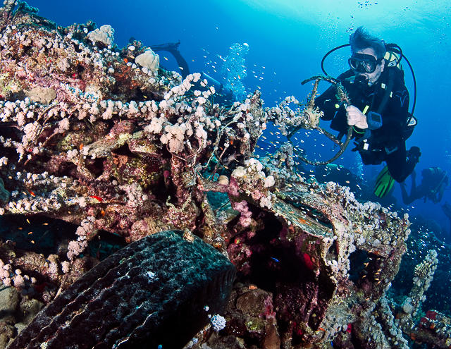 Roncsot fotózni nem (vagyis azt sem) könnyű, meg van is aki nem nagyon kedveli mint témát. Néha érdemes vele kísérletezni, mert hatásos lehet a végeredmény, megvan a varázsa a víz alatti maradványoknak, én például a merülőtárssal tudatos voltam, megmutattam neki, hova és hogy álljon- nem véletlenül. Ilyenkor érdemes kicsit előre is egyeztetni.