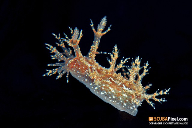 Dendronotus frondosusAkár 10 centisre is megnőhet ez a csiga. Tavasszal ilyen, fiatal példányok láthatók leginkább.