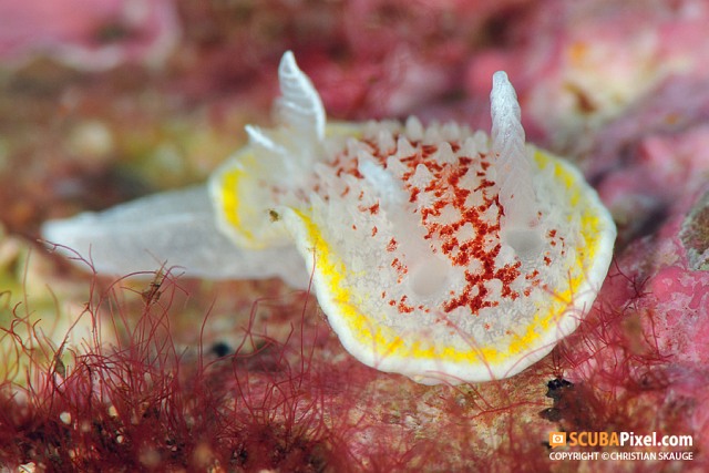 Diaphorodoris luteocinctaApró, de gyönyörű: ez a csigafaj összetéveszthetetlen bármelyik másik csigával.