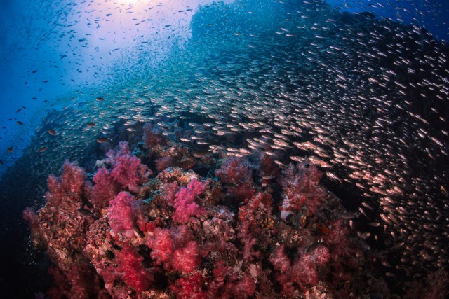 Daytime Traffic - Richelieu Rock, Thailandf/11.0 1/160 Richelieu Rock is a large rocky pinnacle about 10km east of Surin islands known for its colourful and large variety of marine life: vibrant corals, swaying sea fans, and bustling marine activity. A reminder of how a healthy ecosystem should look.