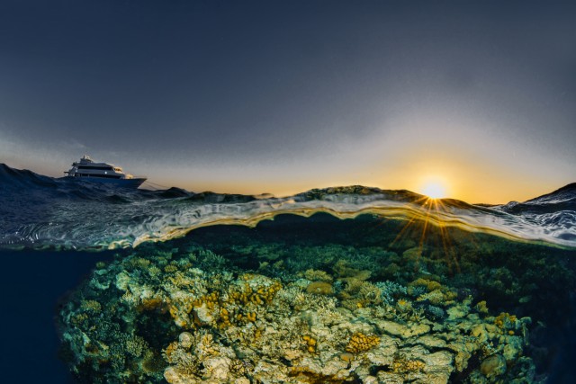 Sunset with Andromedaf/25.0 1/250 Sunset in the Reef, with Andromeda safari boat.