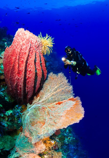 Giant sea creaturesf/8.0 1/125 Giant barell sponge and a man size gorgonia in the Indonesian seas.